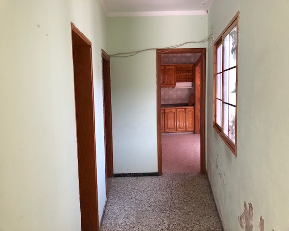 Se trata de una vivienda unifamiliar aislada y se distribuye en 3 dormitorios, cocina, salón-comedor, baño y una puerta que da acceso a la planta superior.