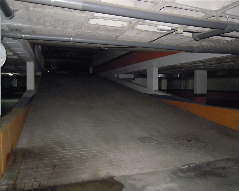 El acceso rodado para vehículos se realiza a través de una rampa de doble sentido por la calle Velázquez.