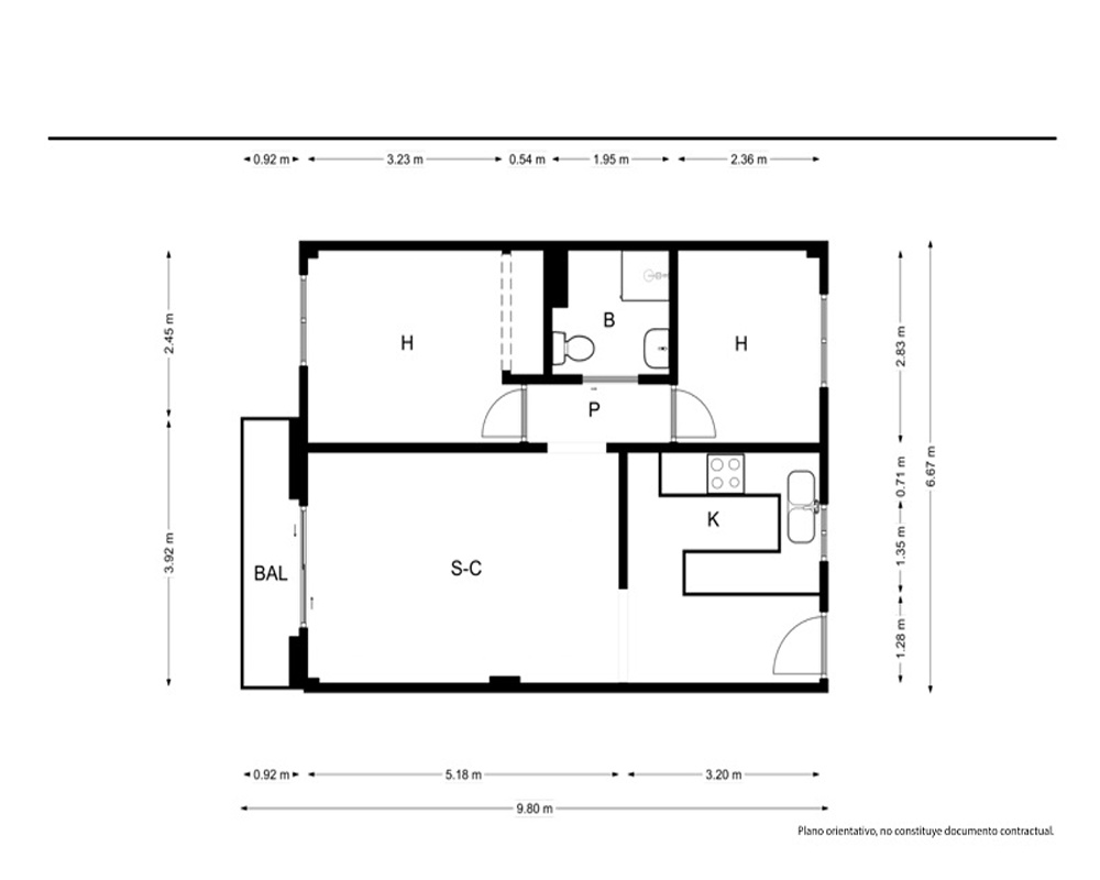 Piso 68 m², 2 hab