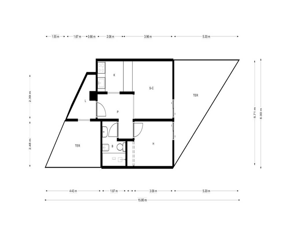 Piso 54 m², 1 hab
