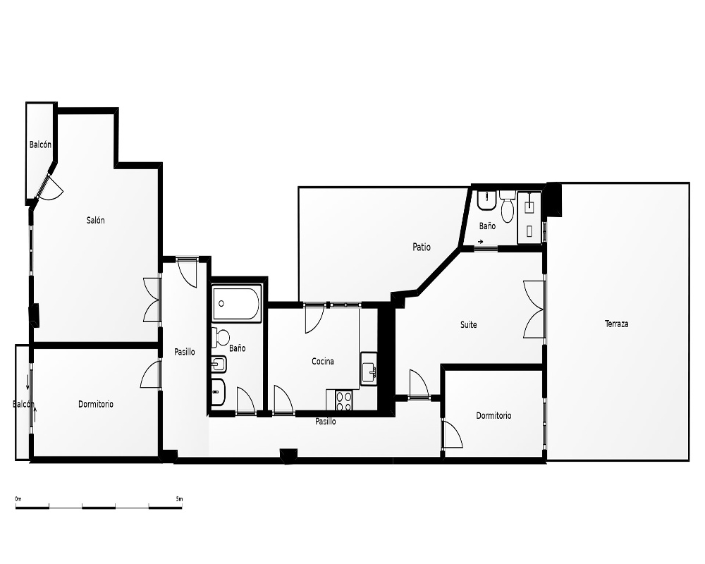 La zona de descanso está compuesta por dormitorios bien distribuidos que ofrecen tranquilidad y privacidad. Estas estancias pueden adaptarse fácilmente como dormitorio principal, uno de ellos con acceso a una gran terraza y los baños de la vivienda completan la distribución aportando funcionalidad y comodidad al conjunto.