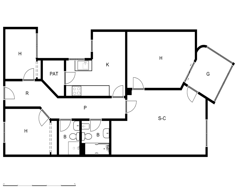 | Dispone | 3 habitaciones | 2 baños |