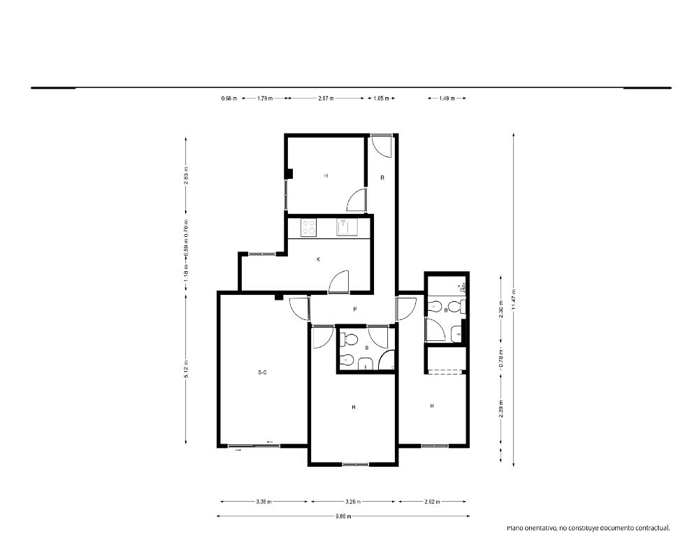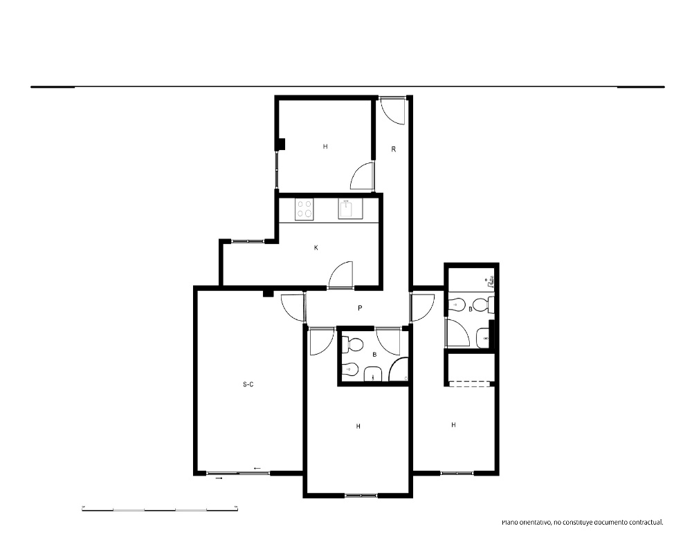 | Dispone | 3 habitaciones | 2 baños |