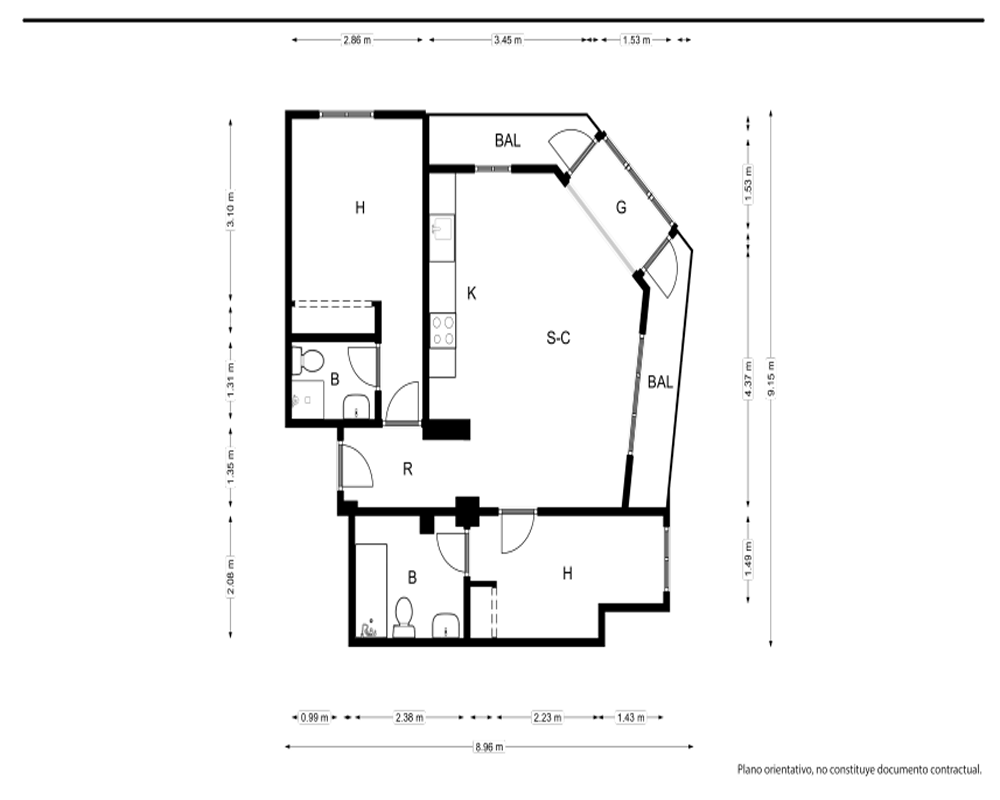 | Dispone | 2 habitaciones | 2 baños |