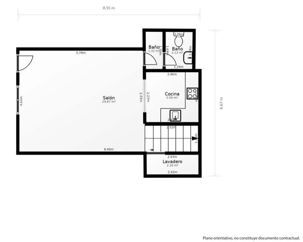 | Dispone | 2 habitaciones | 2 baños |