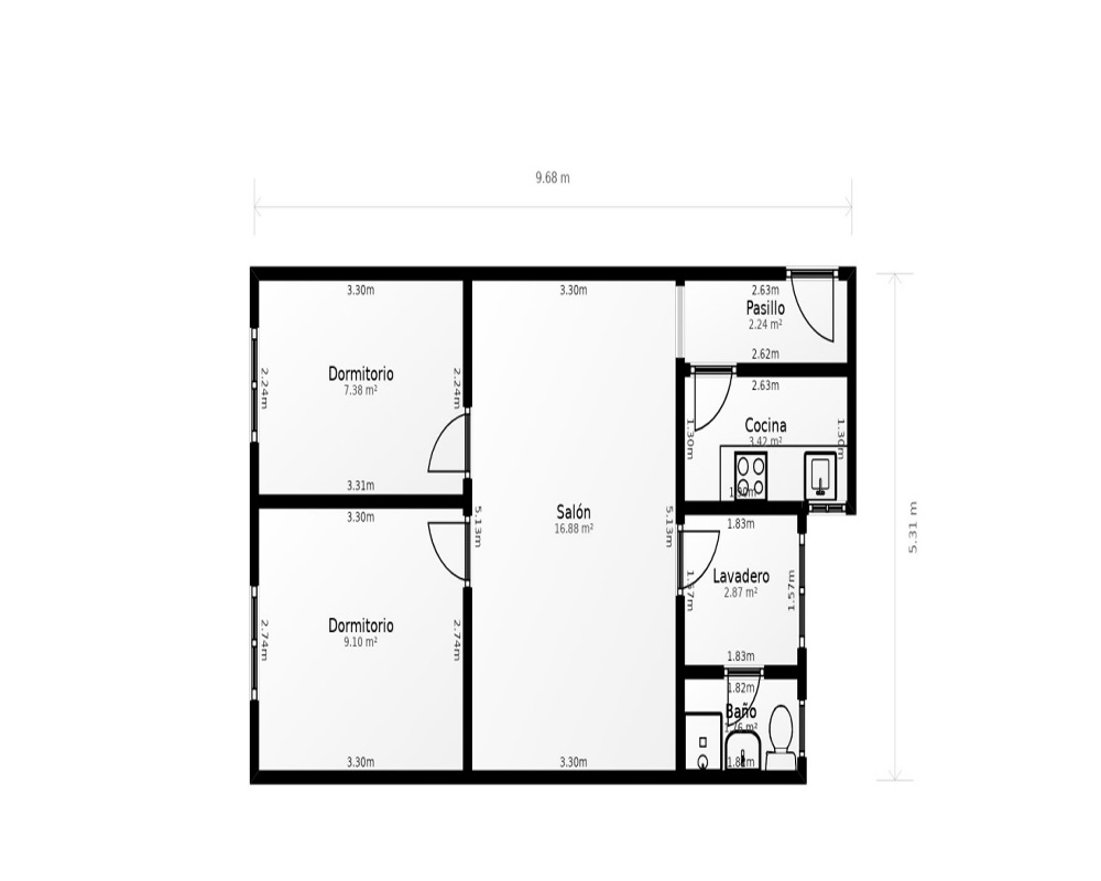 Piso 41 m², 2 hab