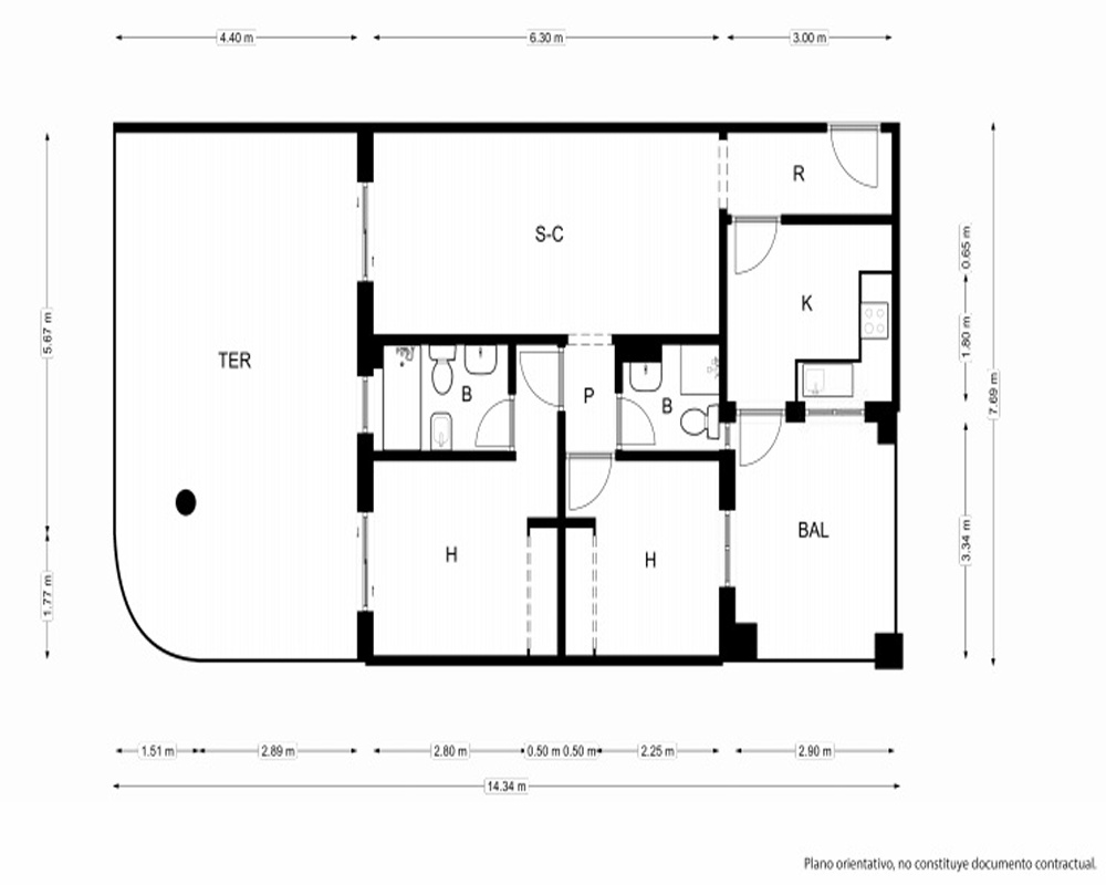 | Dispone | 2 habitaciones | 2 baños |