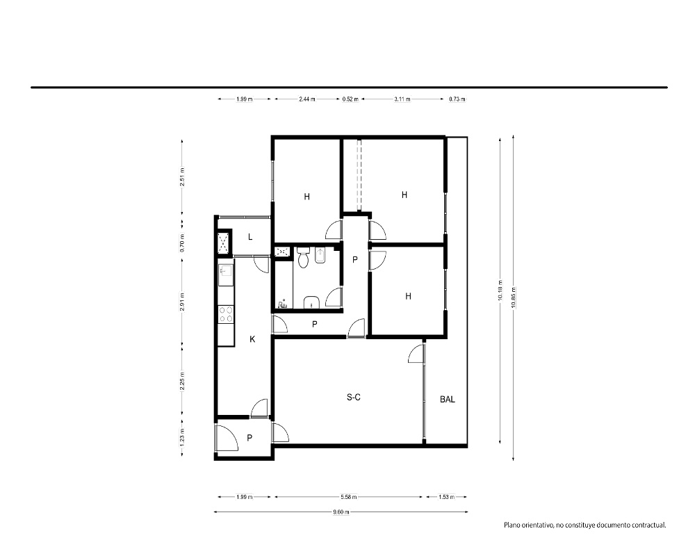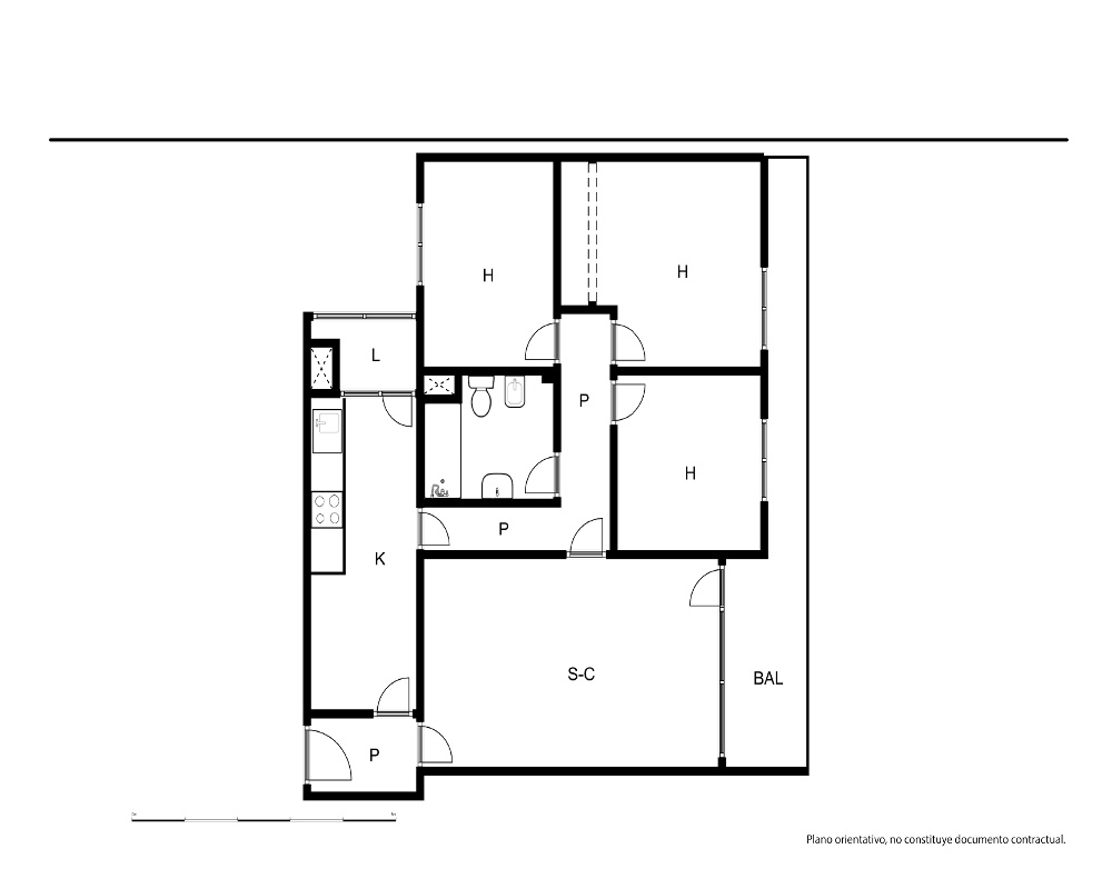 | Dispone | 3 habitaciones | 1 baño |