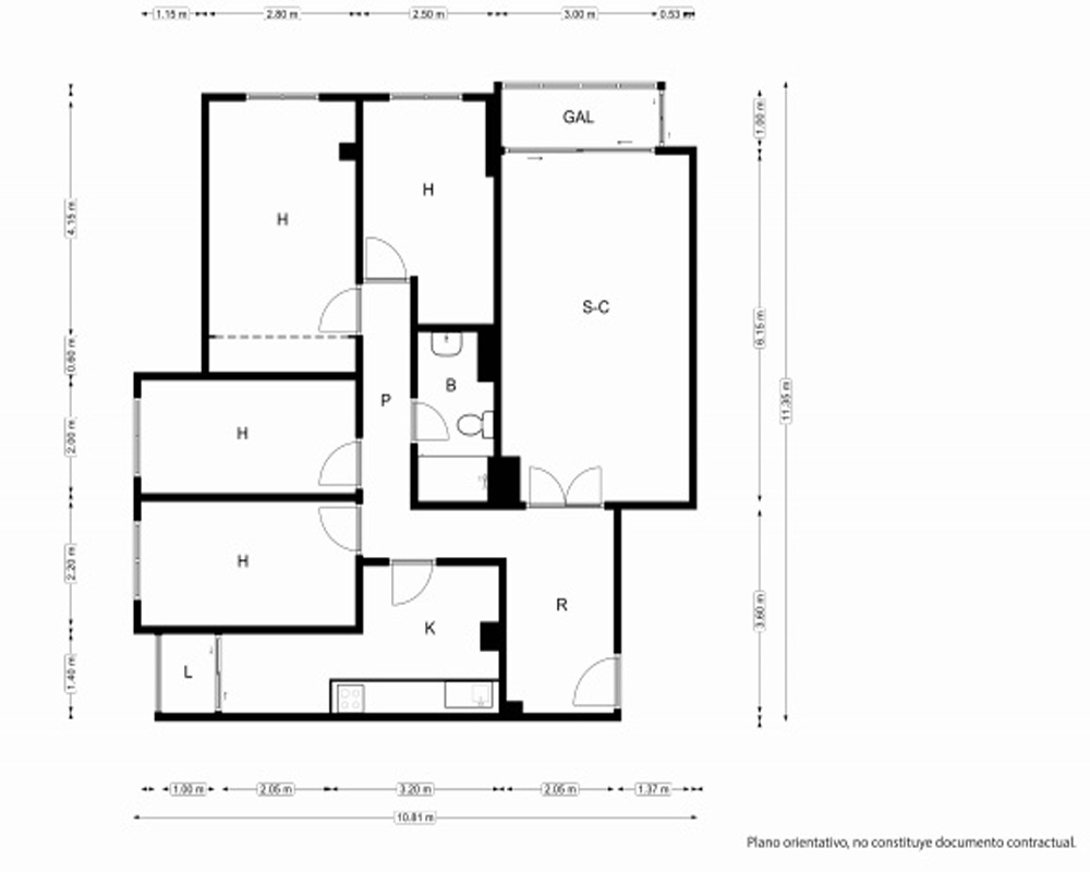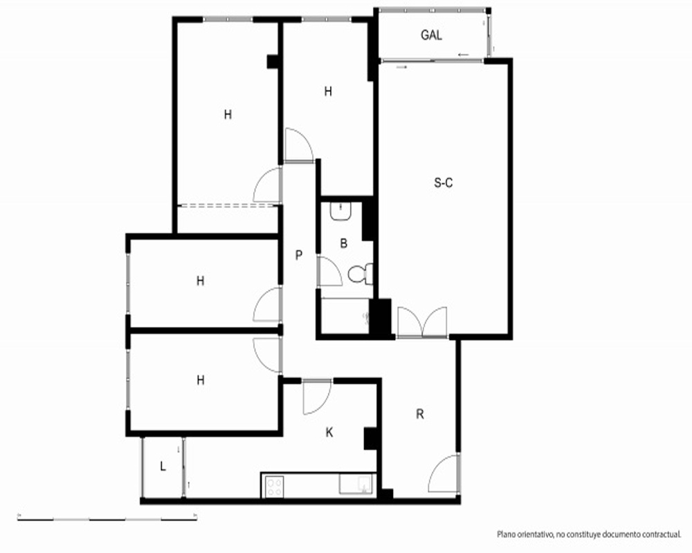 | Dispone | 4 habitaciones | 1 baño |