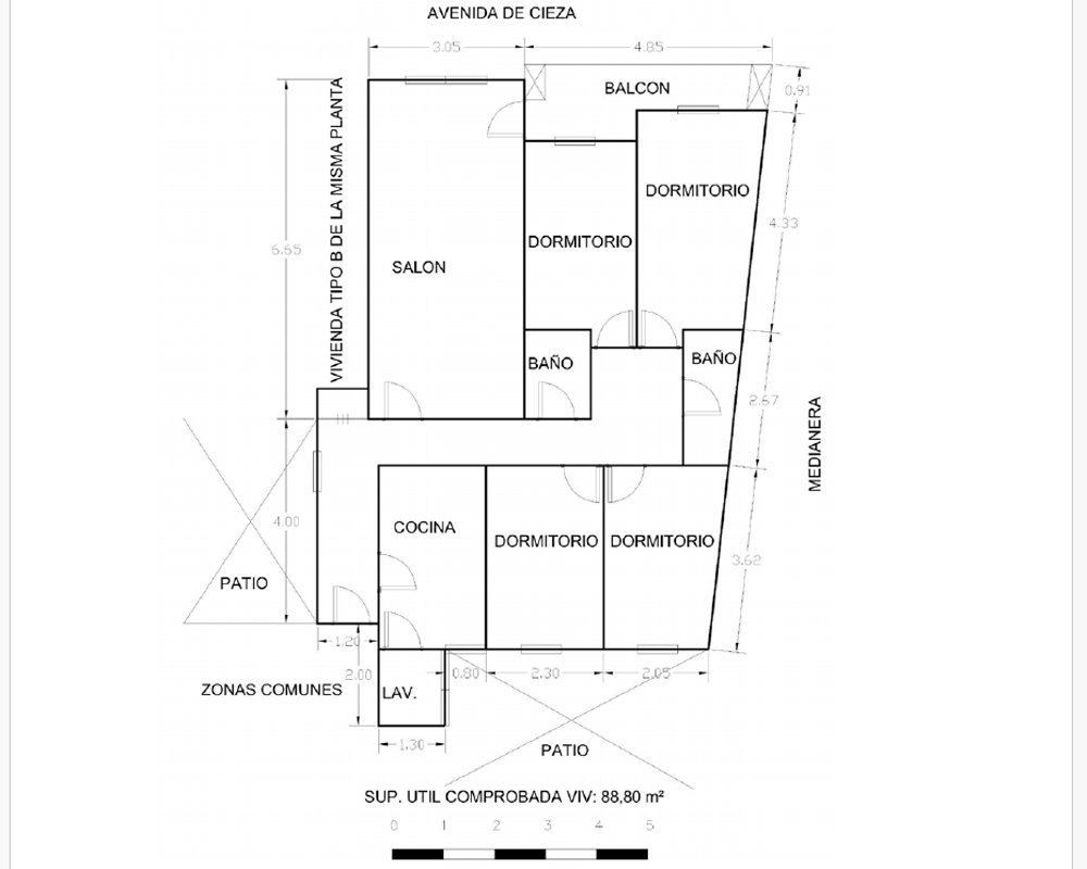 | Dispone | 3 habitaciones | 1 baño |