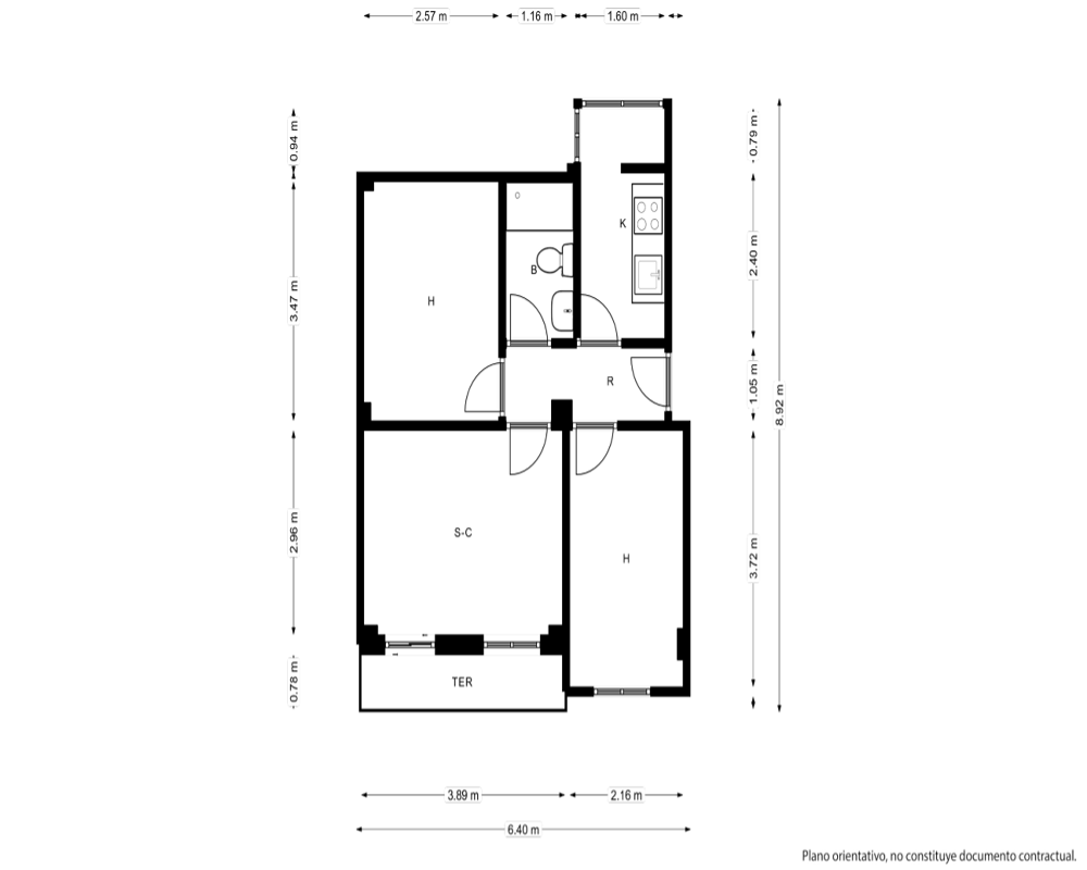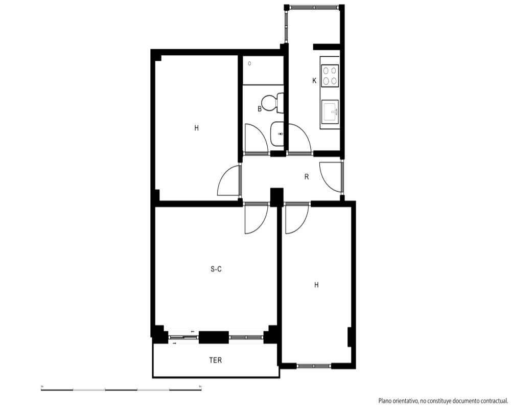 | Dispone | 2 habitaciones | 1 baño |