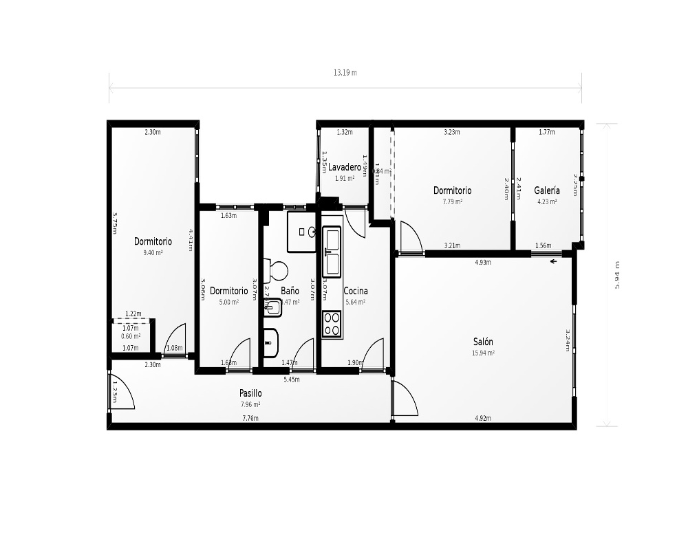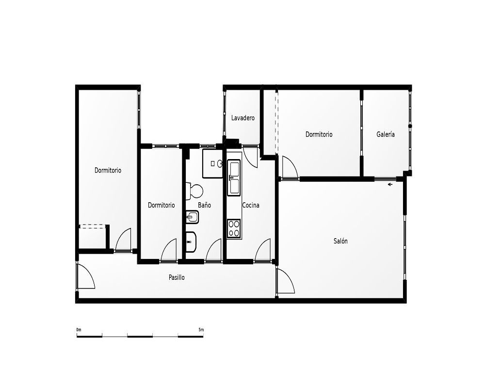 | Dispone | 3 habitaciones | 1 baño |