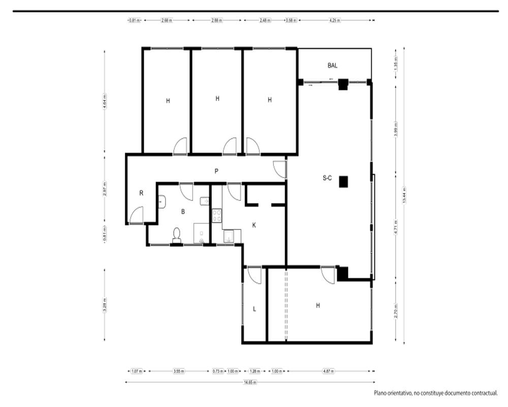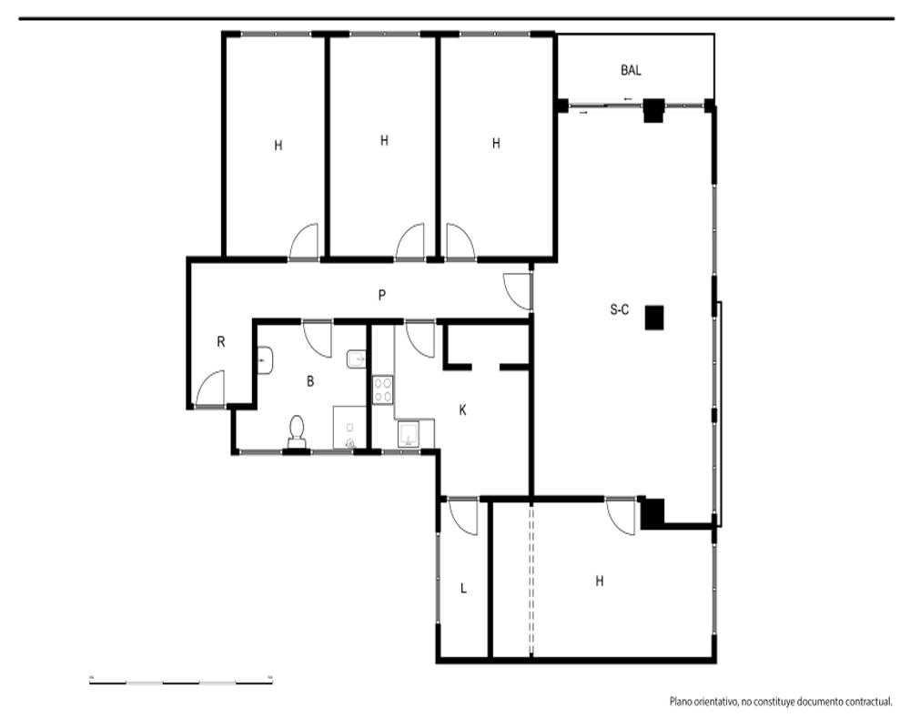 | Dispone | 4 habitaciones | 1 baño |