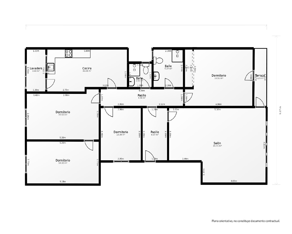| Dispone | 4 habitaciones | 2 baños |