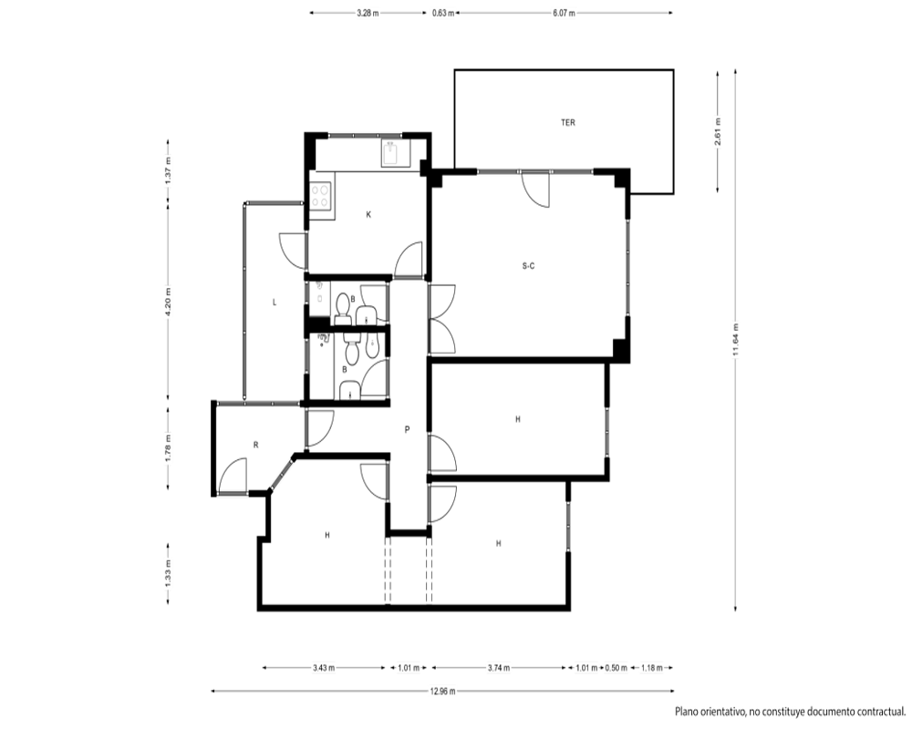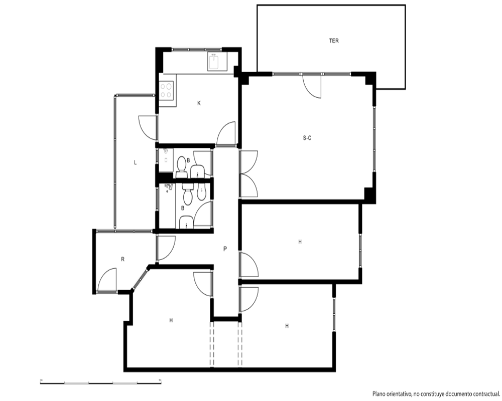 | Dispone | 3 habitaciones | 2 baños |