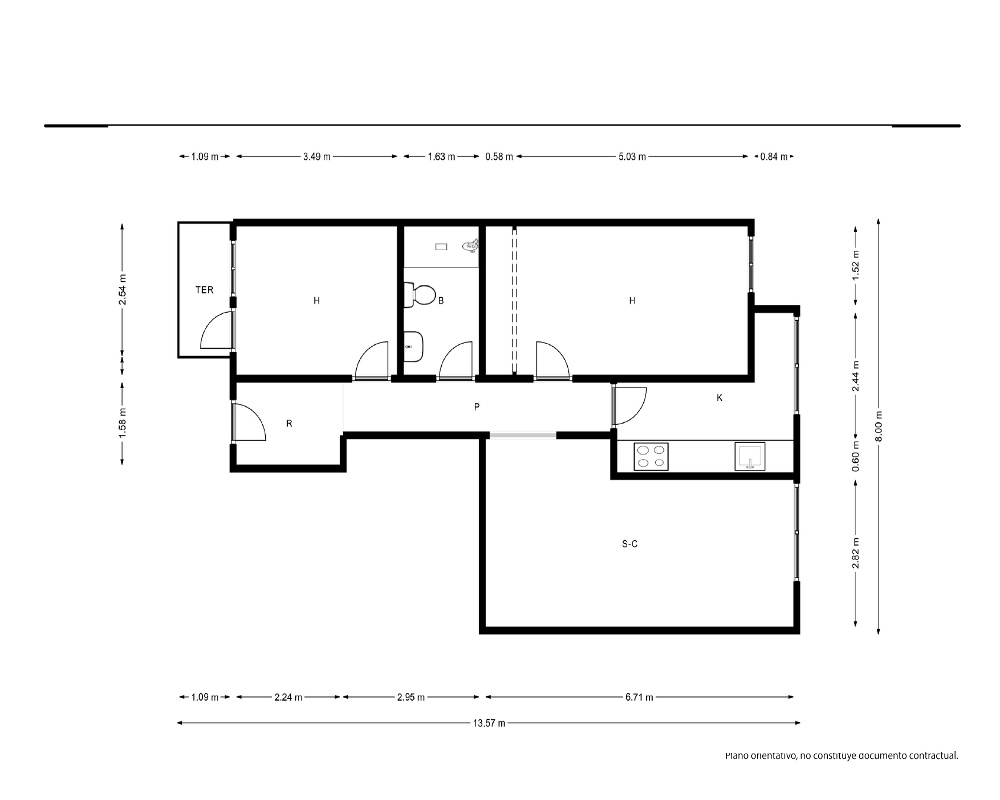 | Dispone | 2 habitaciones | 1 baño |