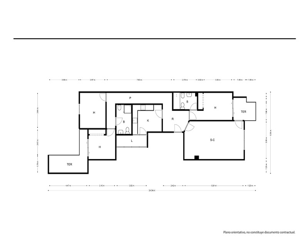 | Dispone | 3 habitaciones | 2 baños |