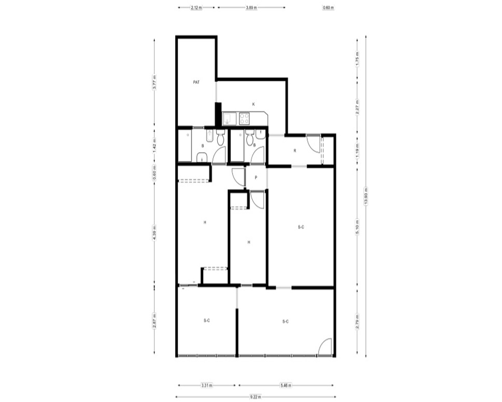 | Dispone | 2 habitaciones | 2 baños |