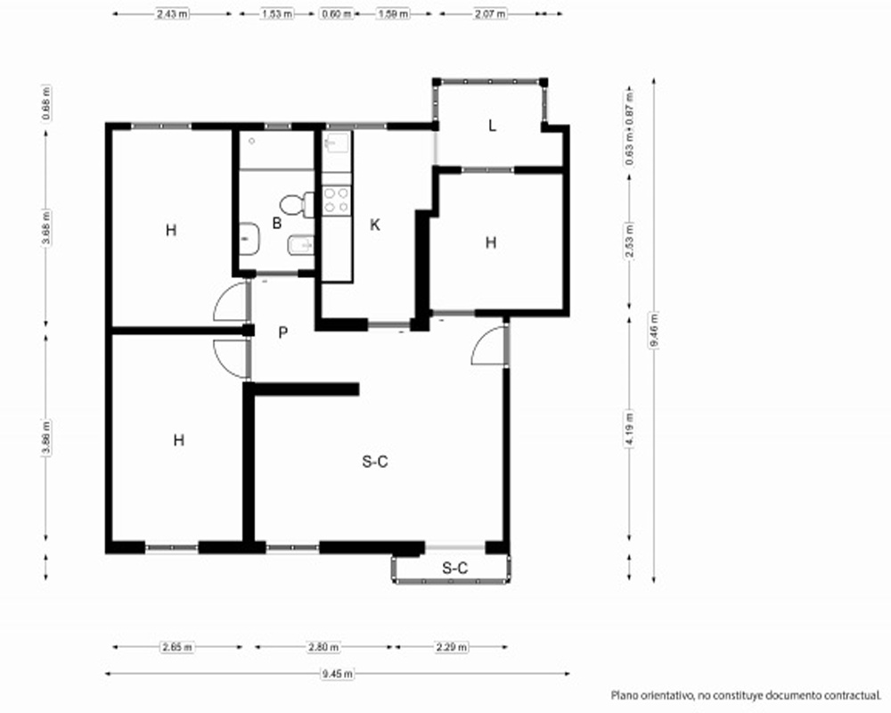 | Dispone | 3 habitaciones | 1 baño |