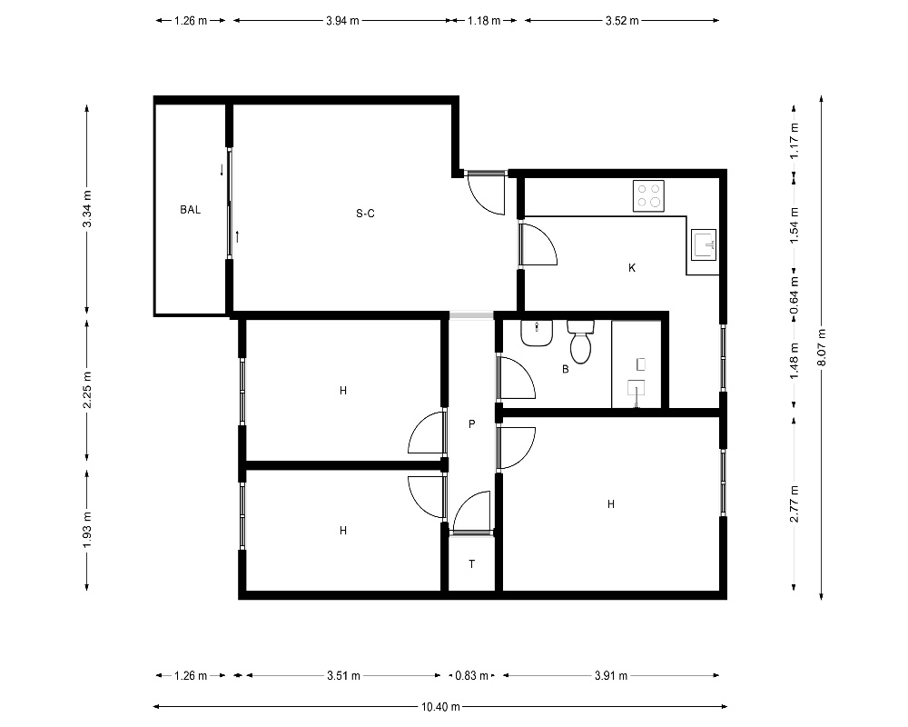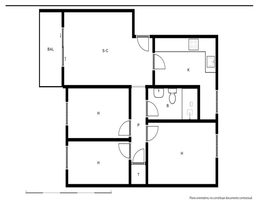 | Dispone | 3 habitaciones | 1 baño |