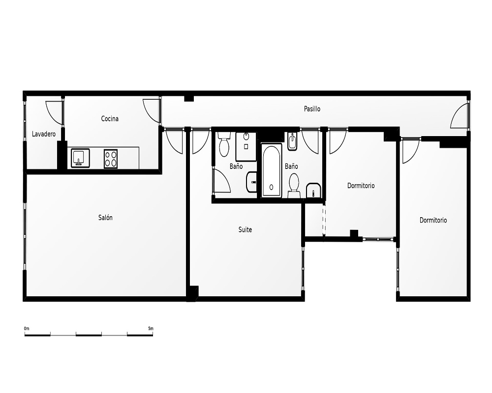 | Dispone | 3 habitaciones | 2 baños |