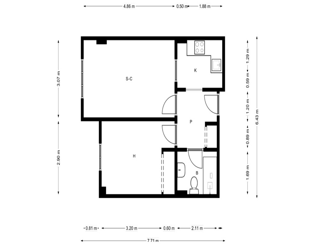 Piso 53 m², 1 hab
