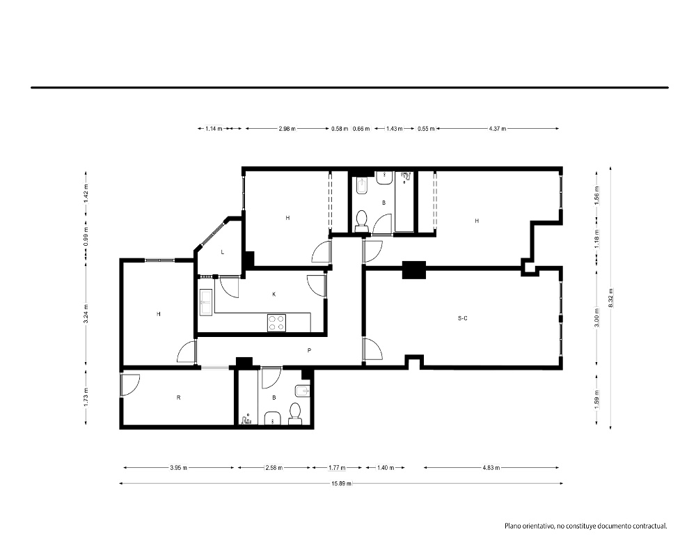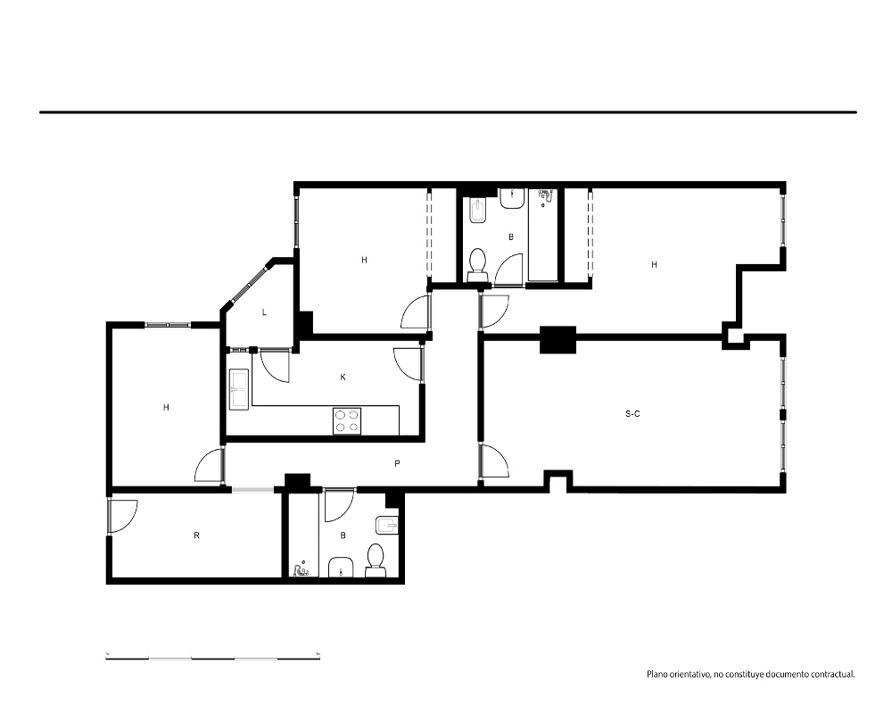| Dispone | 3 habitaciones | 2 baños |