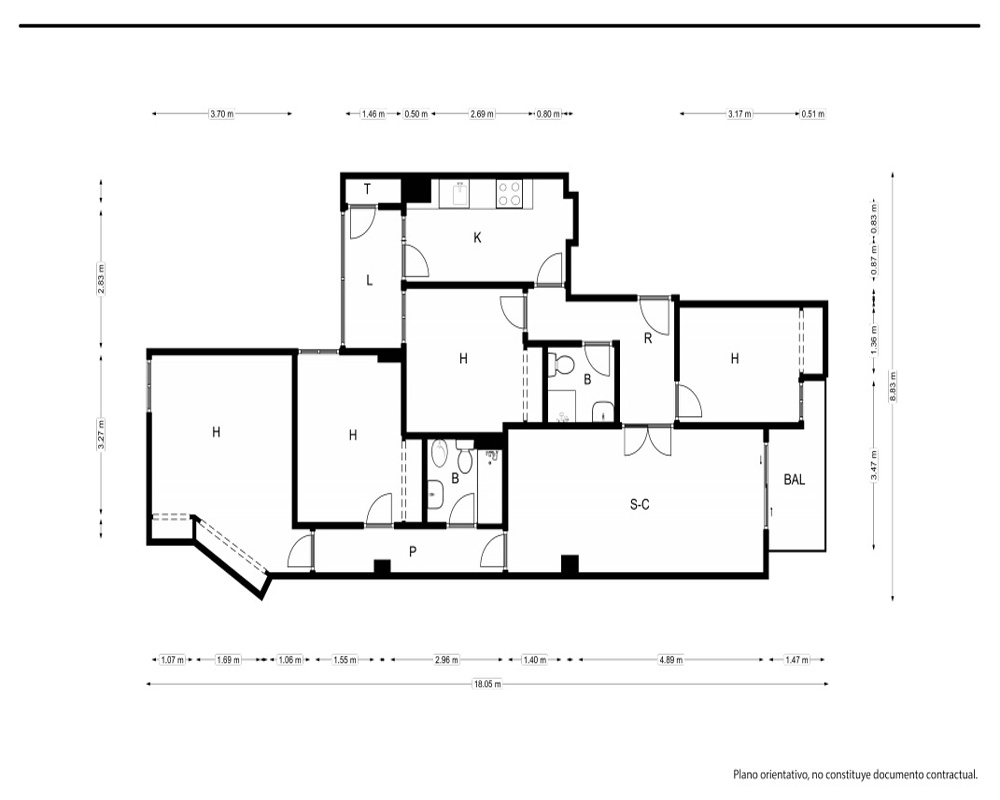 | Dispone | 4 habitaciones | 2 baños |