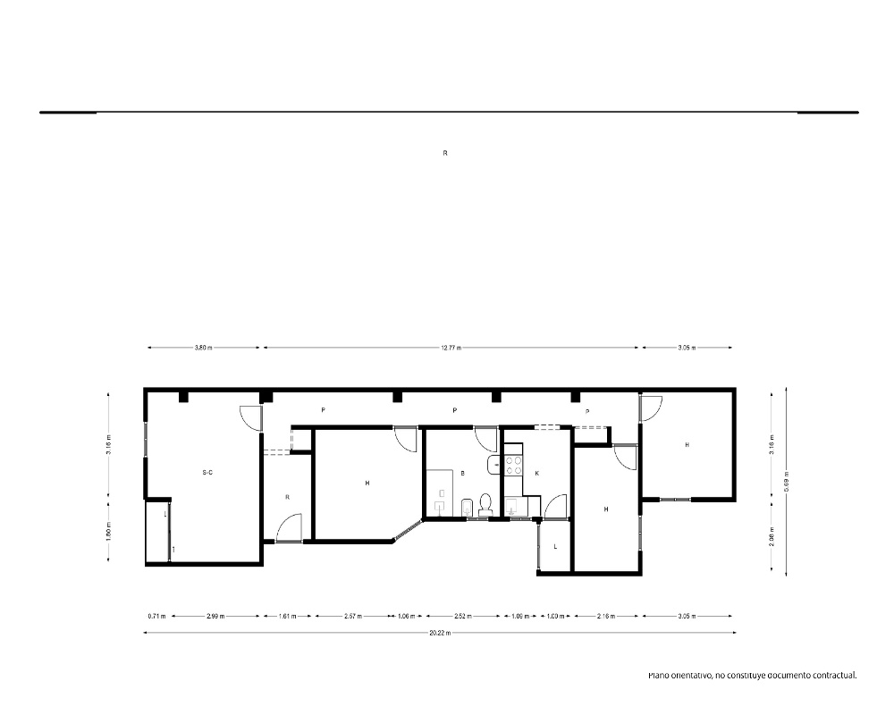 | Dispone | 3 habitaciones | 1 baño |
