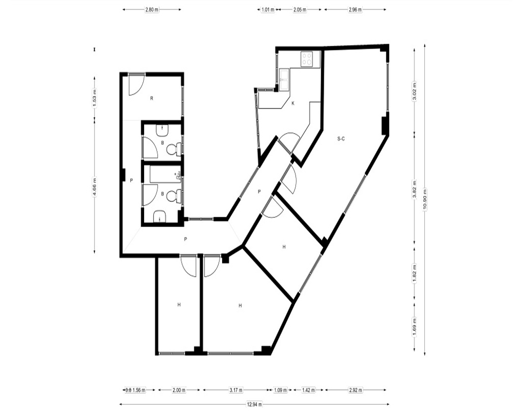 | Dispone | 3 habitaciones | 2 baños |