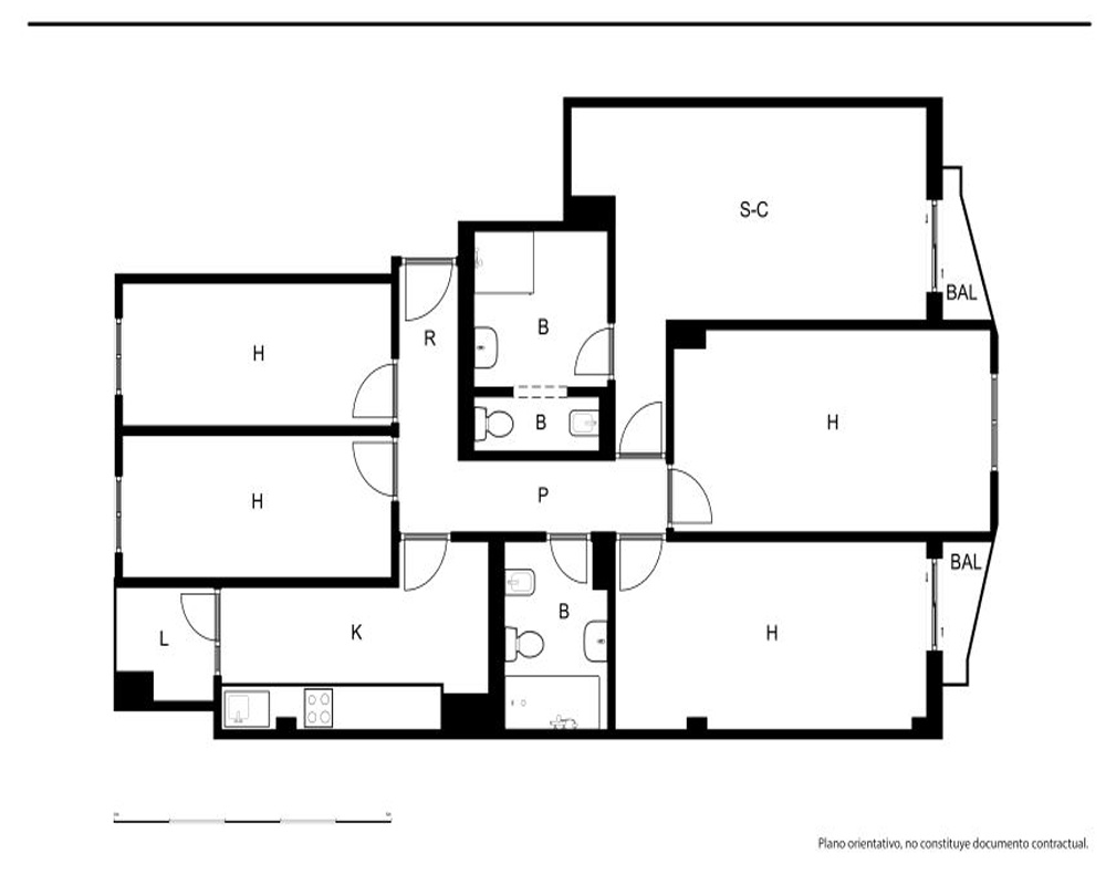 | Dispone | 4 habitaciones | 2 baños |