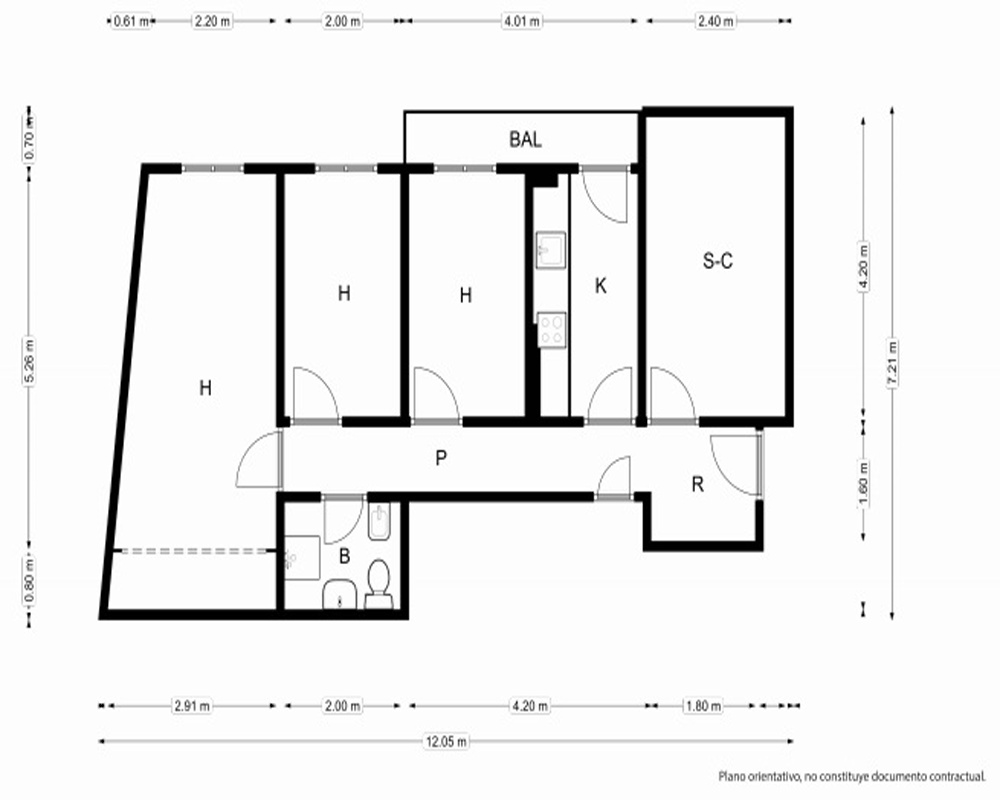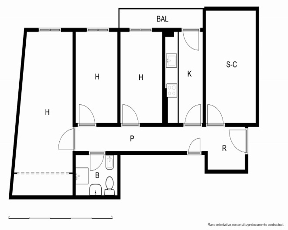 | Dispone | 3 habitaciones | 1 baño |