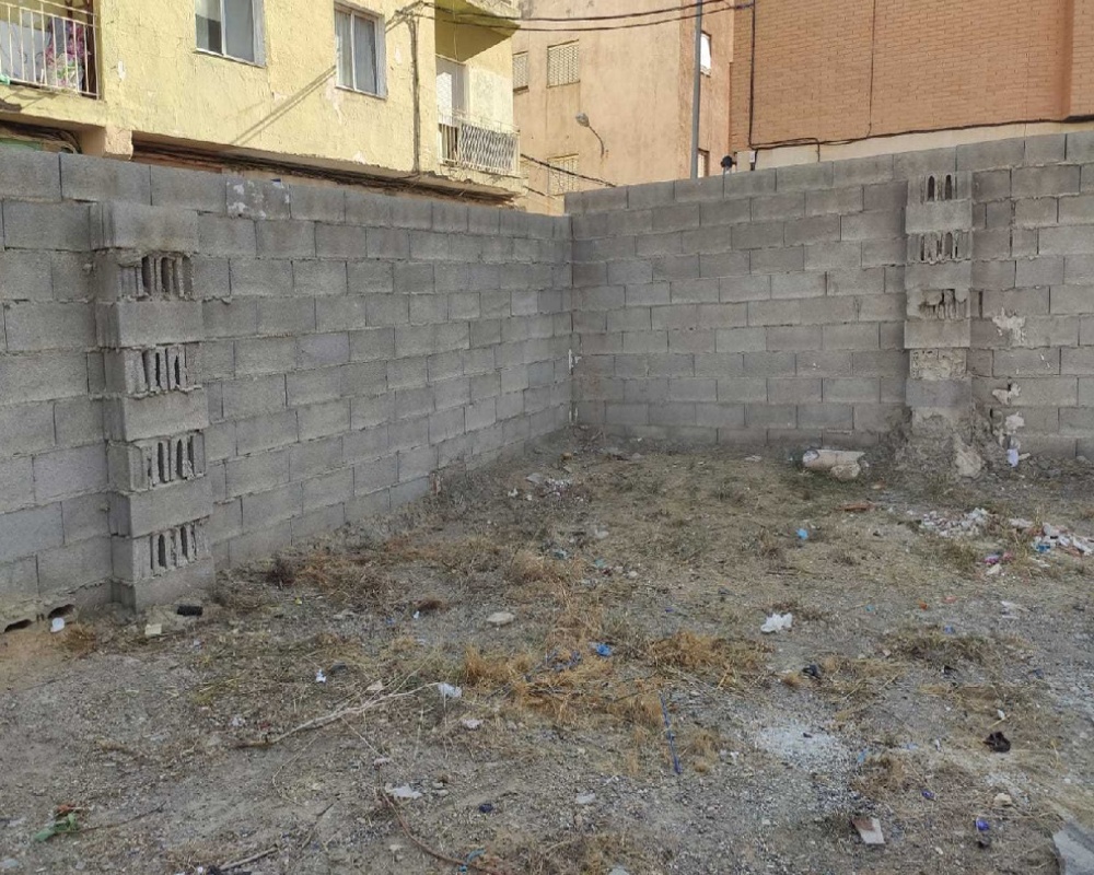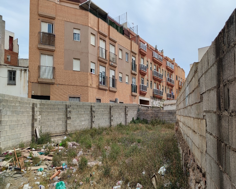 Se trata de una parcela en suelo urbano, colindante con edificaciones, con elementos de medianería y muro de bloques que las separa. En su interior no existen desniveles y simplemente está cubierta por vegetación silvestre de baja altura. No encontramos edificaciones ni infraestructuras dentro, pero si elementos publicitarios.