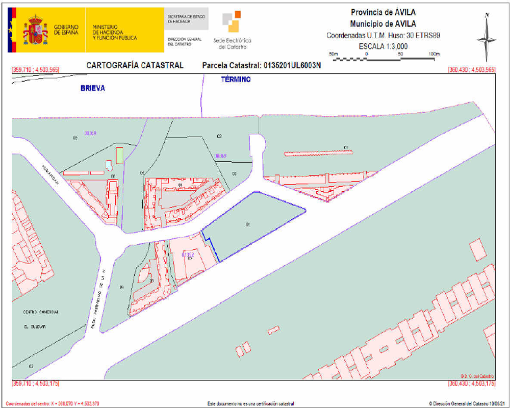 La superficie inscrita del terreno no coincide con la superficie catastral, se ha considerado la superficie neta de la parcela delimitada por las aceras perimetrales y parcela colindante, coincidente con la parcela catastral actual.
