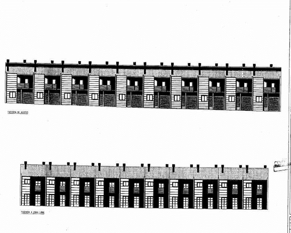 Edificio 1: Total 10 viviendas adosadas tipo 1. Cada vivienda consta de planta baja con garaje, vestíbulo, escalera, cocina, salón y aseo y planta primera con escalera, distribuidor, tres dormitorios y dos baños.