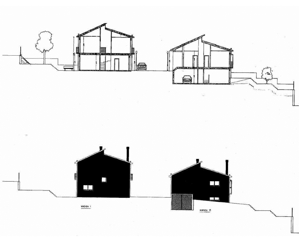 Edificio 3: Total 2 viviendas pareadas tipo 3. Cada vivienda consta de una planta sótano con un garaje, aseo, merendero y escalera u una planta baja con vestíbulo, salón, cocina, tres dormitorios, un baño y un aseo.