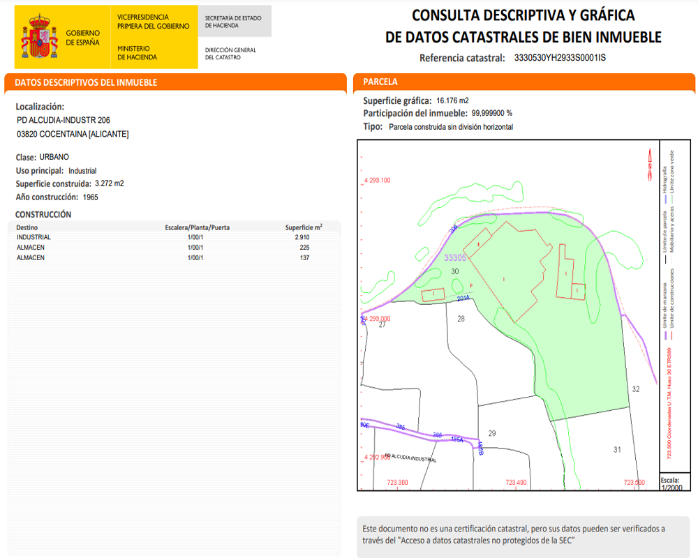 Este suelo está situado en la parte norte del polígono industrial de Cocentaina. Es una zona semi-consolidada por otras construcciones industriales que conviven con terrenos rústicos, muy cerca de la A-7 y de la N-340.