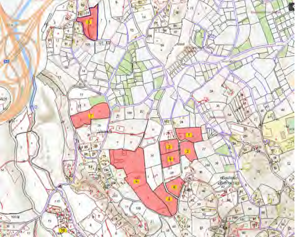 Se ofertan varias parcelas en la zona conocida cómo parroquia de de Bernueces. Las parcelas se encuentran valladas y fuera de explotación. No se aprecian caminos interiores y su lindero más largo comunica con otras parcelas. Se trata de una finca sin aprovechamiento agrícola en la que se observa pasto y en alguna ganado. No se aprecian instalaciones de riego.