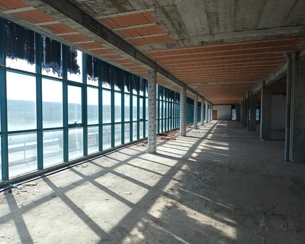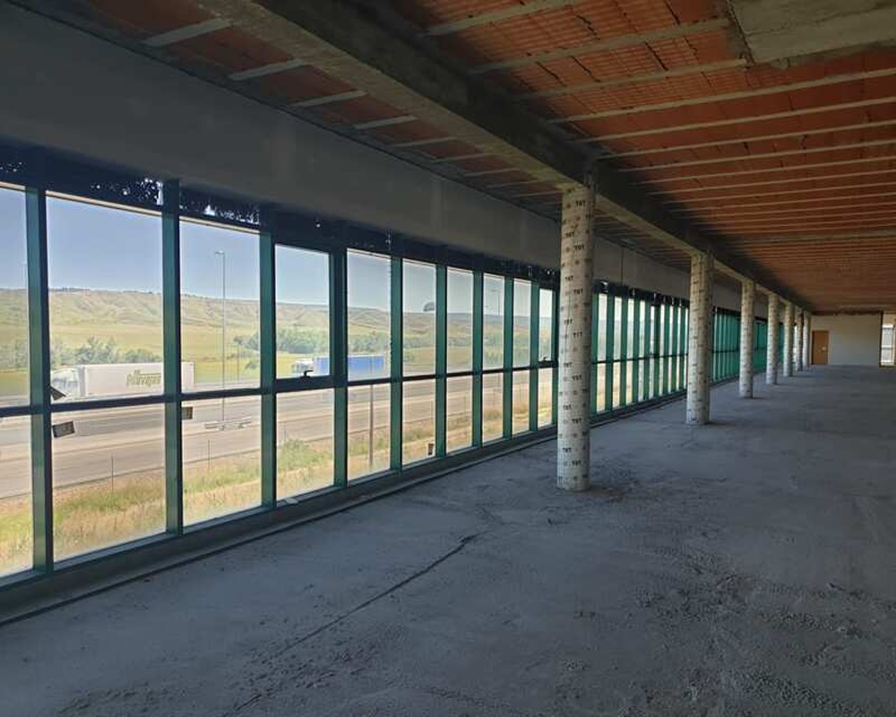 Se trata de un edificio moderno, destinado a oficinas, muy luminoso, con fachada acristalada, fácilmente identificable desde la A2 .