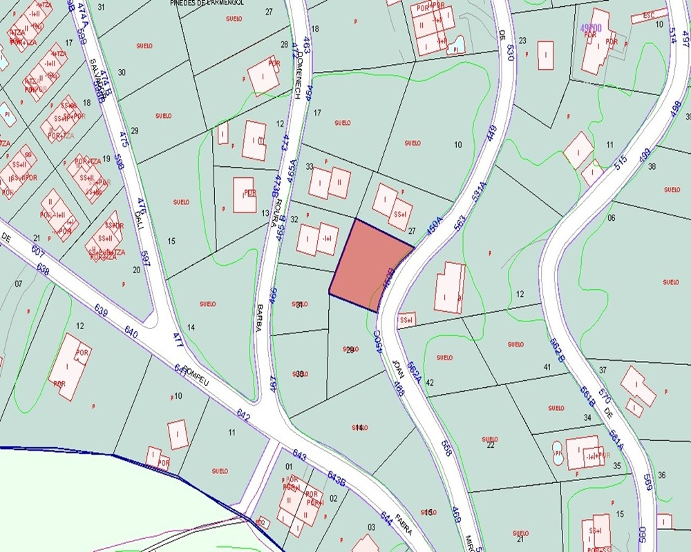 Suelo urbano sin edificar en la urbanización de les pinedes d´ Armengol, el municipio de La Torre de Claramunt, provincia de Barcelona. Dispone de una superficie de 431 m2. La topografía natural del terreno es llana, con fachada a dos calles. La caracterización urbana, es que se trata de una zona con desarrollo finalizado, con una consolidación de nivel medio alto. Existe pavimentación, alcantarillado, suministro de agua, suministro de luz, existe suministro de gas por red general, dispone de postes de servicio telefónico, alumbrado público, la conservación de la calidad de las infraestructuras colindantes es de nivel medio. Con nuestros servicios podrá encontrar el suelo urbano que necesita y asegurar su inversión con el mejor de los asesoramientos especializados. Empiece ahora mismo pidiendo más información. Un responsable cercano a usted le atenderá personalmente.