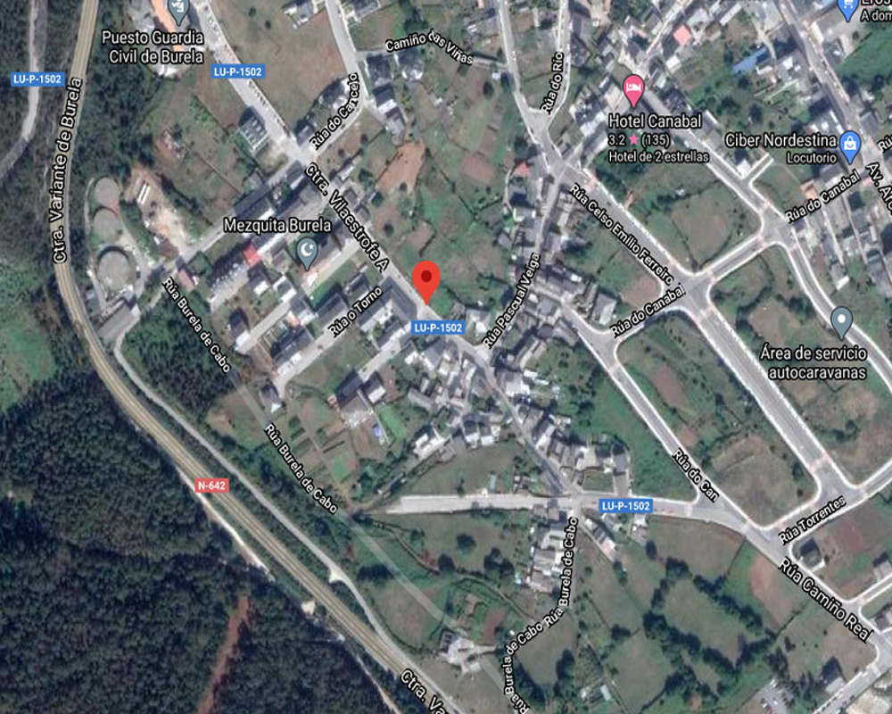 -Parcela en suelo rústico de especial protección con frente a la calle Castrelo, de Burela (Lugo) de morfología irregular asimilable a un trapecio con frente aproximado a calle de 2.50 m. y 15.95 m de fondo.
