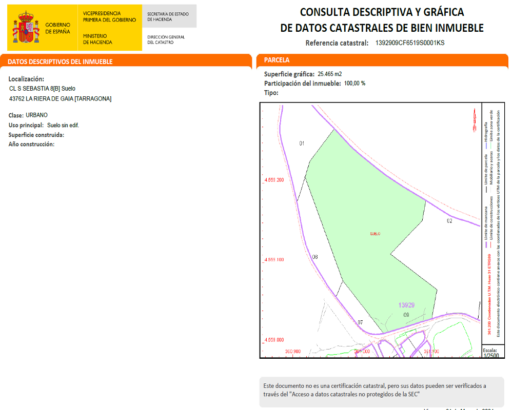 - Referencia catastral: 1392909CF6519S0001KS.