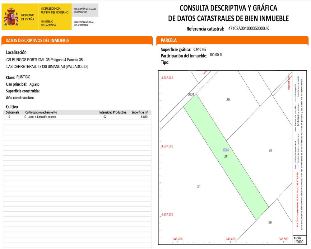 - Referencia catastral : 47162A004000350000JK