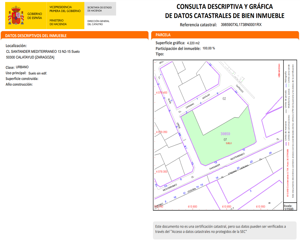 Este suelo urbano es una parcela registral, perteneciente al «PGOU» del municipio de Calatayud.