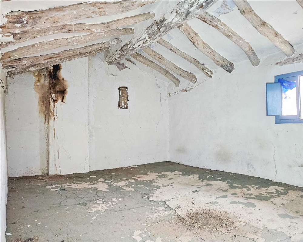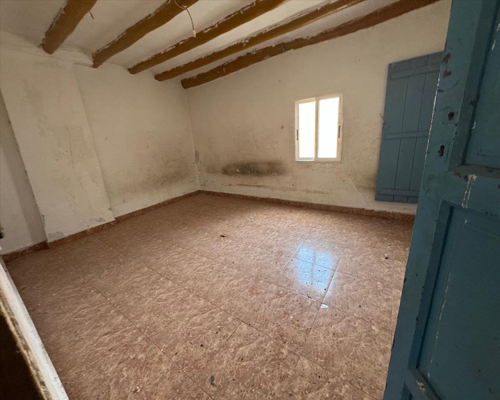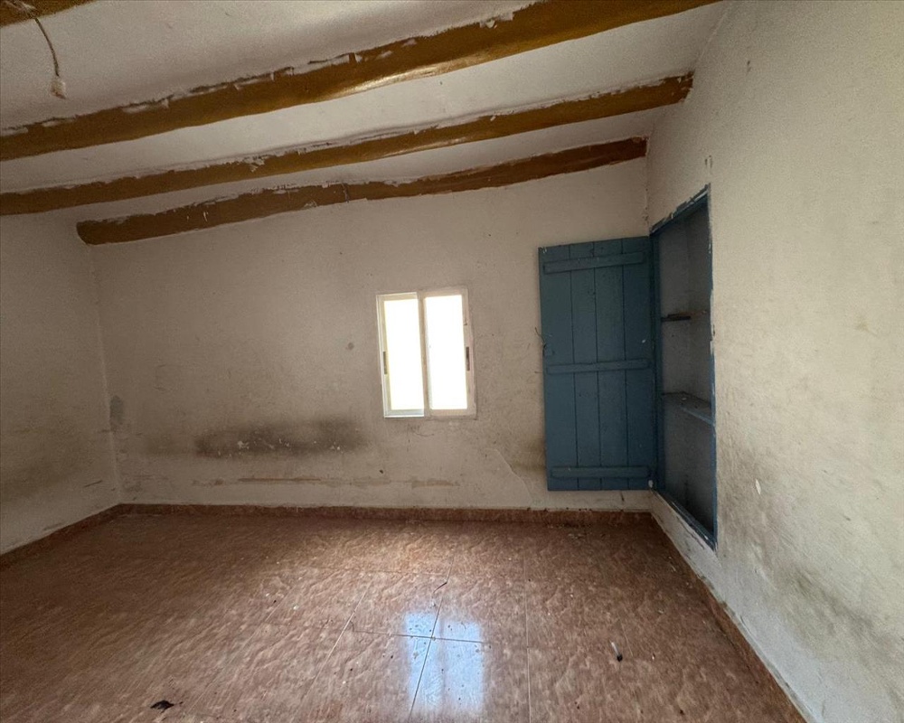 Vivienda unifamiliar adosada de dos plantas sobre rasante. Tiene una distribución de salón comedor, cocina, dos dormitorios y un baño, con chimenea, vigas de madera.